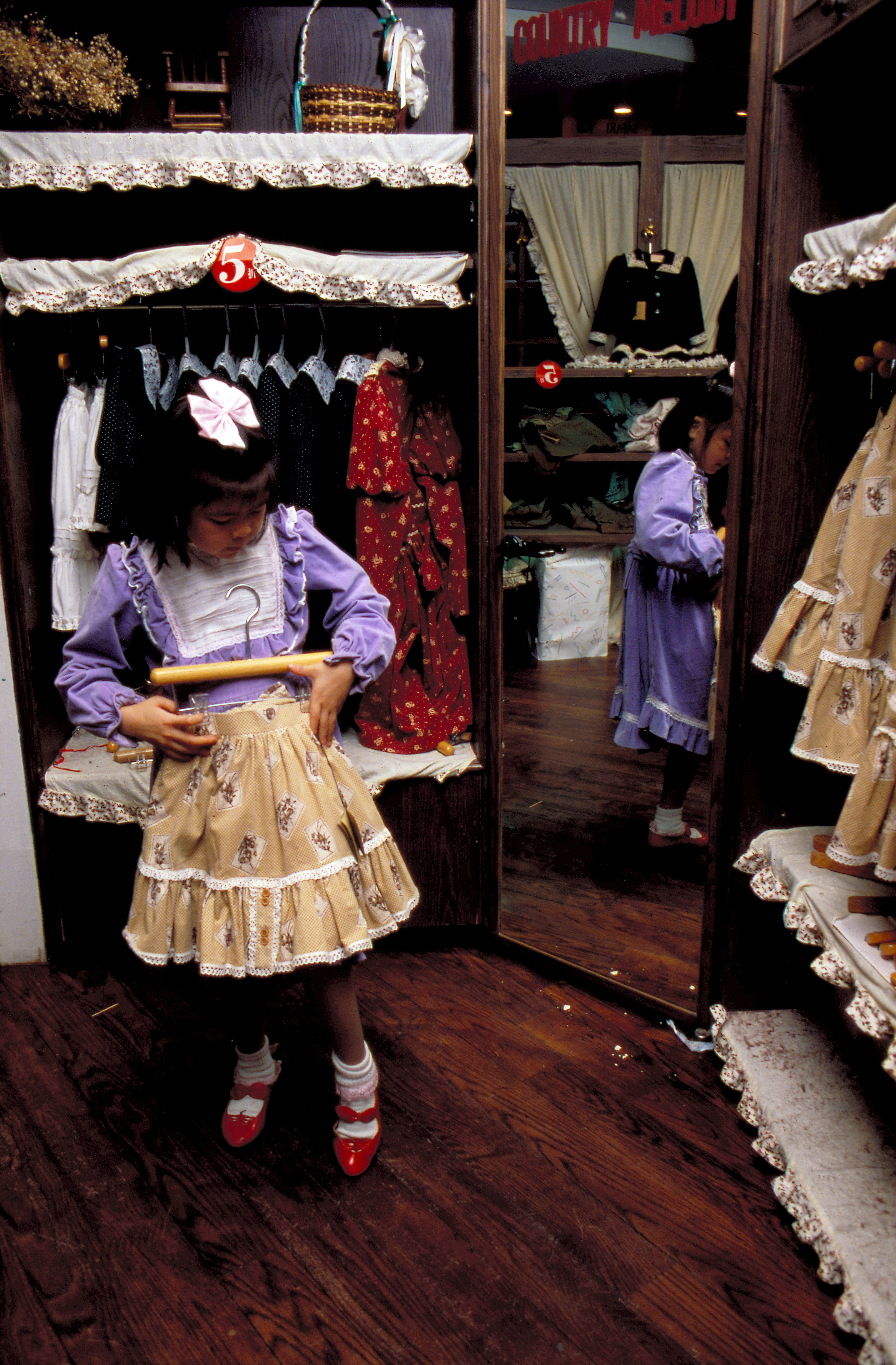 兩年前,中興百貨公司開風氣之先,集結十餘家廠商,在台北市東區設立「流行娃娃專門店」,為這批流行的童裝開闢了表演的舞台。自此,童裝與少淑女裝同步,將流行融入設計中:在色彩上大膽使用豔麗原色對比搭配、黑白色系、銀光色系、濁色系……;在款式上有強調墊肩的、有走休閒路線、鄉村系列、學府風味、叢林系列……等。