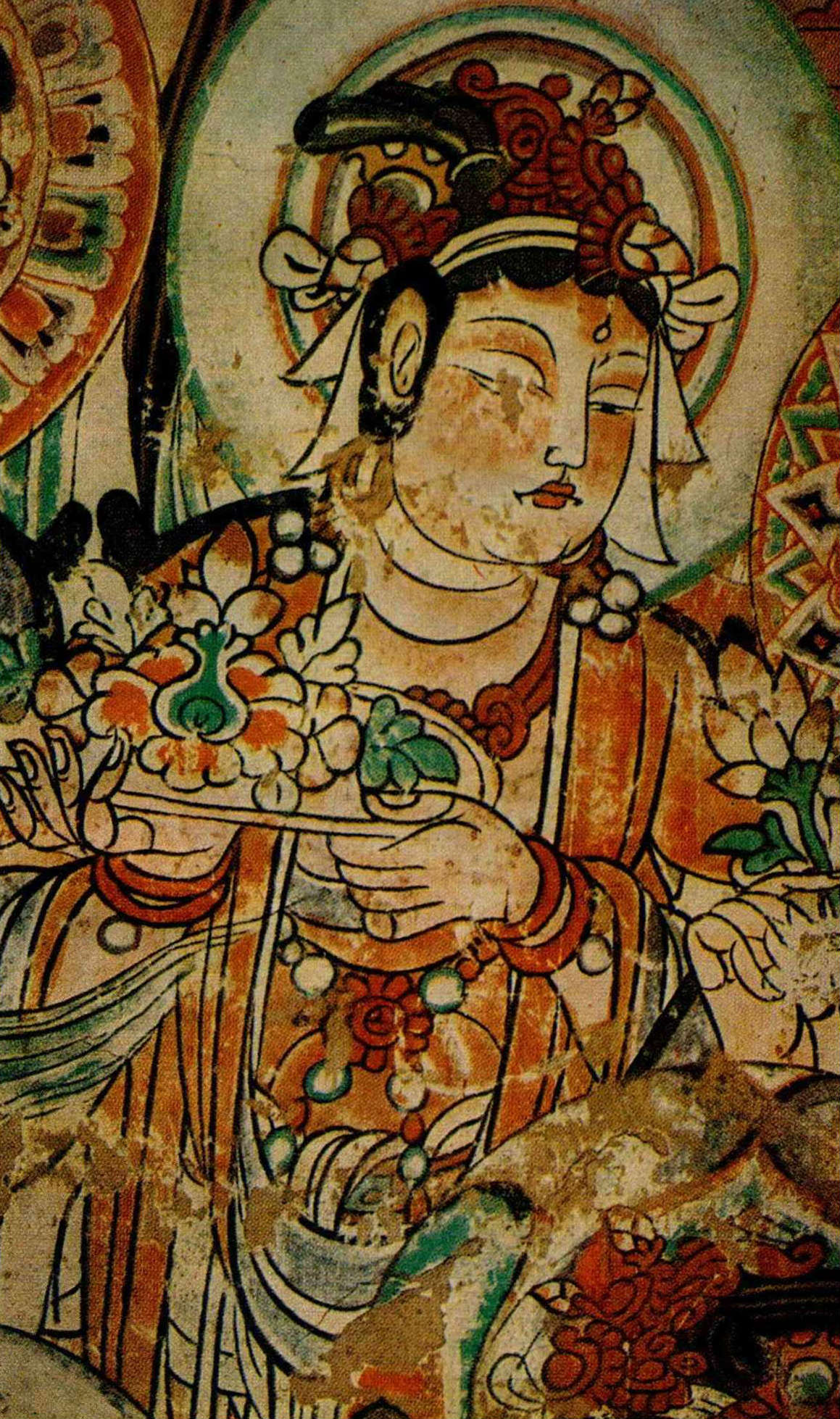 在敦煌窟的藻井畫,就有石榴與葡萄組合的豪華紋樣,風格華麗而成熟;而敦煌壁畫上也出現過菩薩手捧石榴花果的畫面。從圖案的發展來看,北魏時代已有類似波斯的石榴紋,至隋唐時代則更多寫生的石榴紋,然後配合中國獨有的雲紋發展成海石榴華紋,延續到清代,愈來愈複雜的海石榴華紋,已混合了蓮花、蓮葉等圖案了。另外,中國裝飾紋樣中最為豪華的所謂「寶相華紋」,實在也是從海石榴華紋發展出來的。
