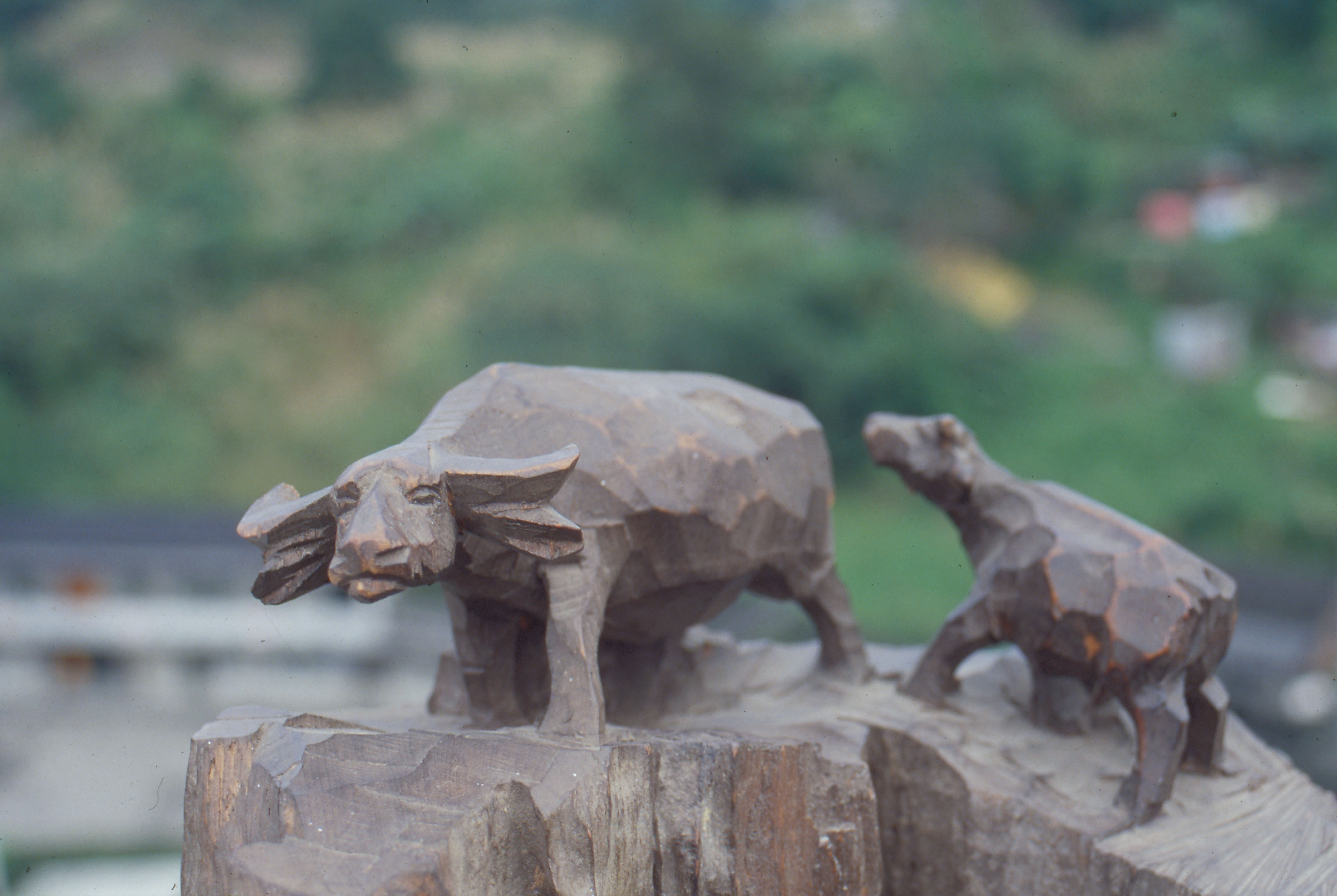 圖2.:朱銘的木雕「舐犢情深」,表現的也是水牛溫馴厚實的一面。(楊永山)