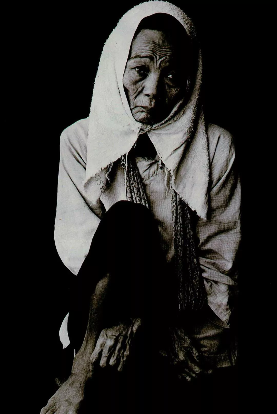 「生病的婦人」(一九六三年)中,許淵富直率、銳利地抓住了一個病中婦人的老暮心緒。婦人獨特的裝束與坐姿,她哀愁的眼神,乾瘦的臉頰與脈絡嶙峋的手背跡痕,在全黑的背景前,傳達了令人心悸,動容的感傷。