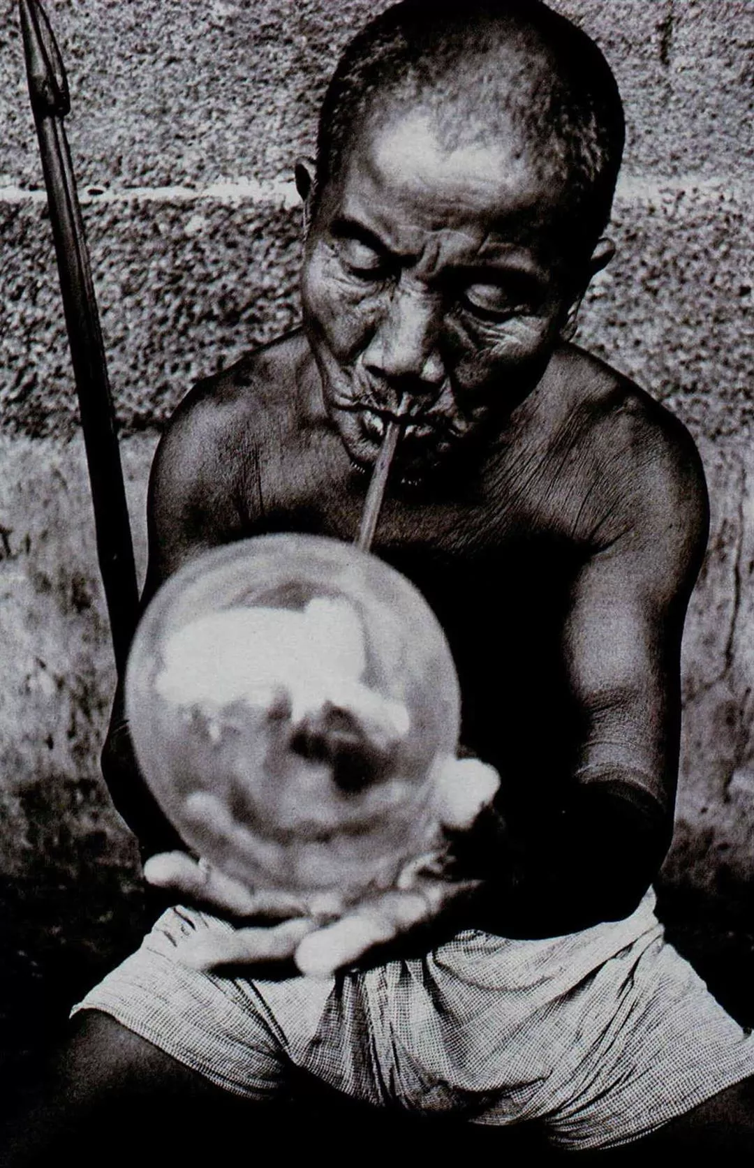「吹糖人」(一九六三年)使我們看到消逝中的人與事物經由照像紀錄而留下恆久的一瞥。這媗膆靰漱ㄛO吹糖的技藝,而是吹糖人的專注與宿命。淺短的焦距景深,使人更能集中視力在老人的嘴角、神態與膚色上,從而感知人體機能與質素的變遷,它的老化、韌力和存活意志等等聯想。