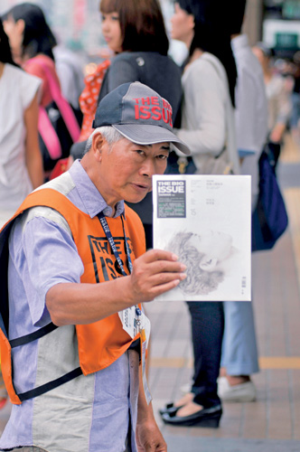 去年得知《TBI》徵求販售員的消息後,李隆柱立刻報名加入,成為第一批的元老成員。除了雨天之外,幾乎全年無休,不論酷暑寒冬,平均每天在街頭站上10小時,一天約能賣出20本雜誌,收入維持基本生活無虞。