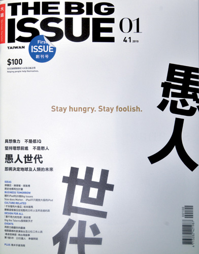 選在去年4月1日愚人節發行的創刊號,封面上頭大大寫著「愚人世代」,靈感來自於蘋果電腦創辦人賈伯斯2005年在史丹佛大學演講時的結尾:「Stay Hungry, Stay foolish(求知若飢,虛心若愚)」。