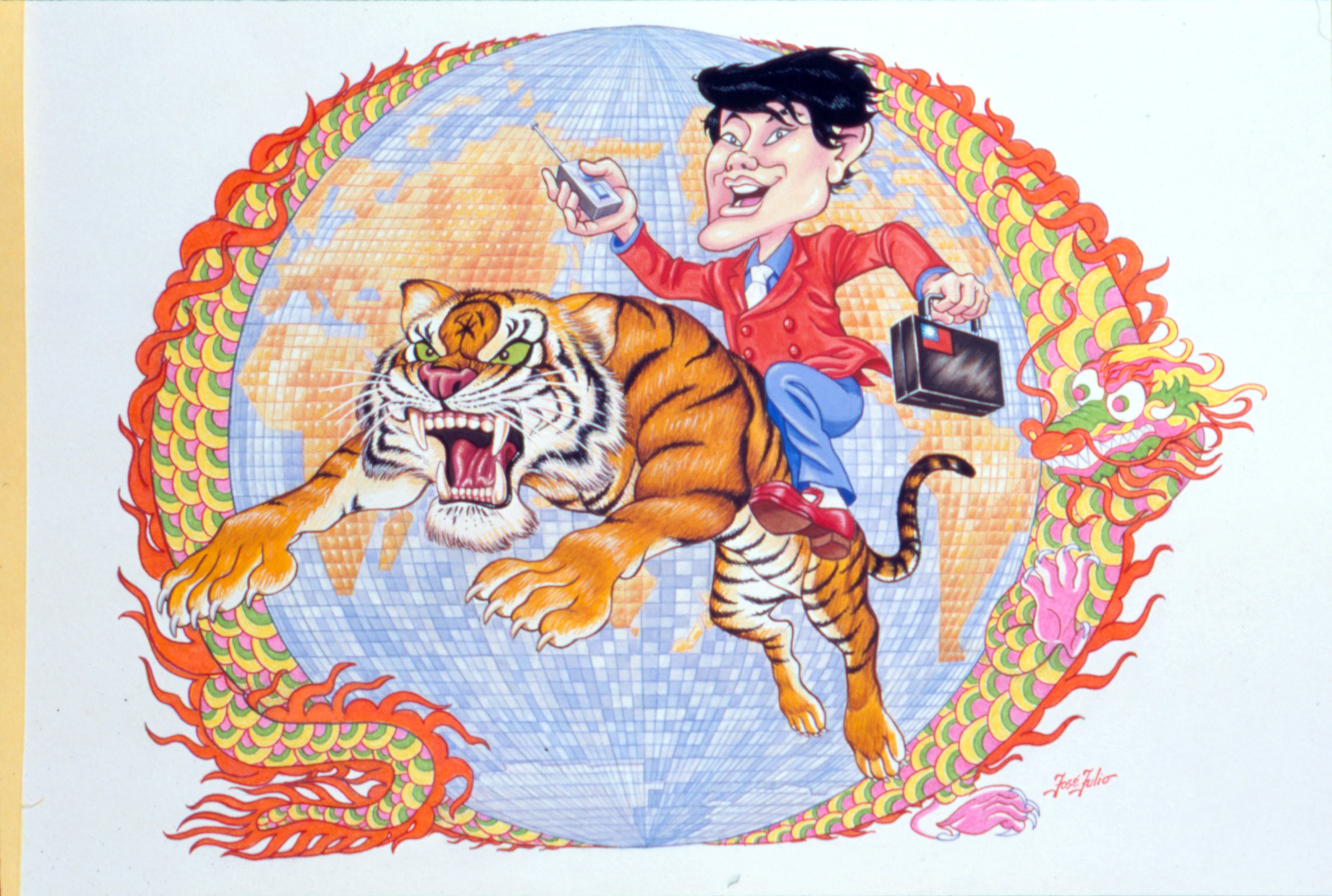 得到這項比賽冠軍的,是廿七歲的西班牙漫畫家哥美斯。這位十四歲就出版過個人專集的漫畫家,對中華文化素感興趣,他知道去年在農曆生肖上屬「虎」,於是畫出了騎著猛虎活躍在地球上的「李表哥」,地球周圍則以祥龍環繞。