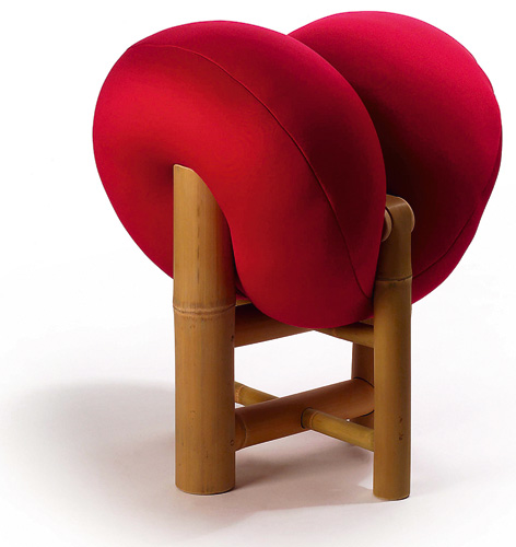不過,看在不識客家文化的西方人眼中,這張中間凹陷、兩頭飽滿的紅色「粄凳」,卻意外地產生「性感」的聯想。