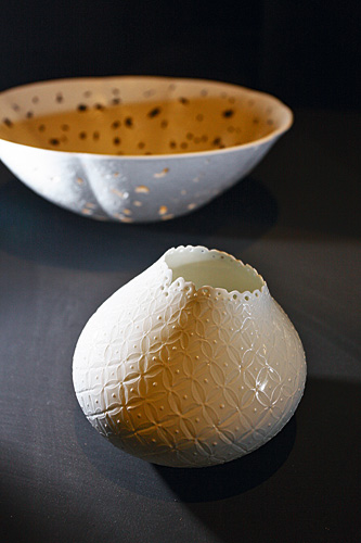 由一件花器和2個碗組合而成的蕾絲碗組,表達為人母者對於女兒婚嫁的祝福,精美、頗具詩意,是Yii去年在法國參展時詢問度最高的作品。