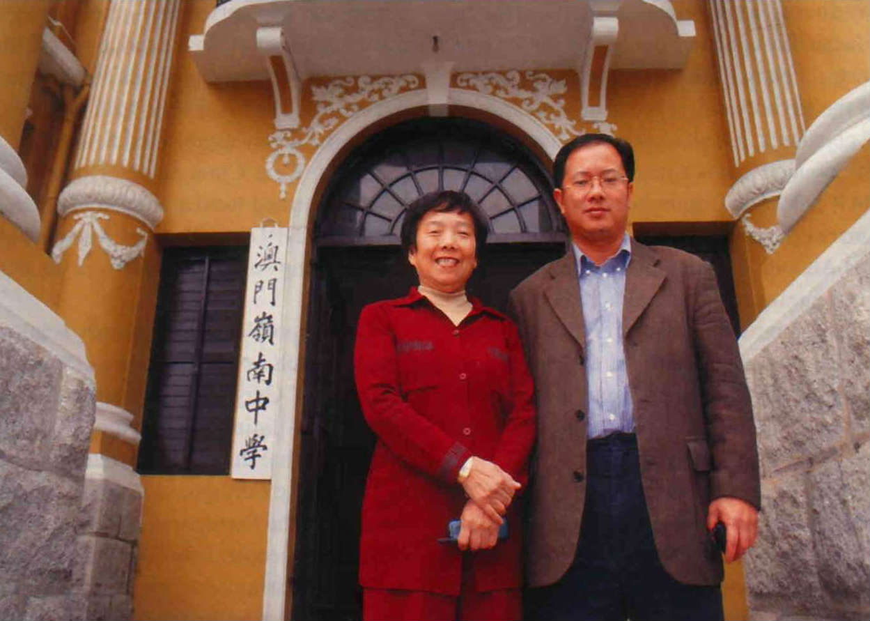 澳門學生赴台唸書歷史久遠,留台校友許多已是澳門社會中堅。右為今年澳門留台大專校友理事長梁文耀,也是澳門著名的土木工程師。左為嶺南中學校長區金蓉,曾任特區政府第一屆籌委。(邱瑞金)