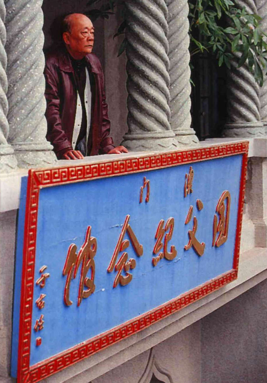 我駐澳單位之外,澳門國父紀念館是唯一可看到掛著青天白日旗的地方。館前遠眺的是已退休的館員張榮,在澳門的龐大的親中勢力下,仍堅持在中華民國的雙十國慶向國父遺照獻花行禮。(邱瑞金)