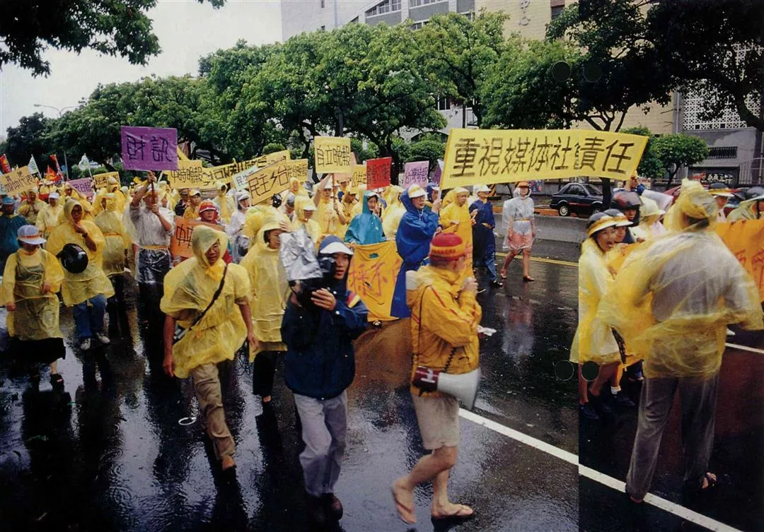 報禁開放十年,台灣的言論市場大開。記者出身的新聞學者徐佳士卻擔憂媒體有「三媚」:媚勢、媚商、媚俗。圖為台灣記者協會上街頭呼籲強化媒體社會責任。(張良綱攝)(張良綱攝)