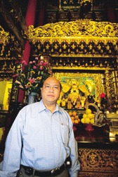 擔任慈祐宮總幹事三年來,陳玉峰(左)不但打理廟務,更關心民眾疾苦,希望能將媽祖娘娘的慈悲關懷散播在人間。