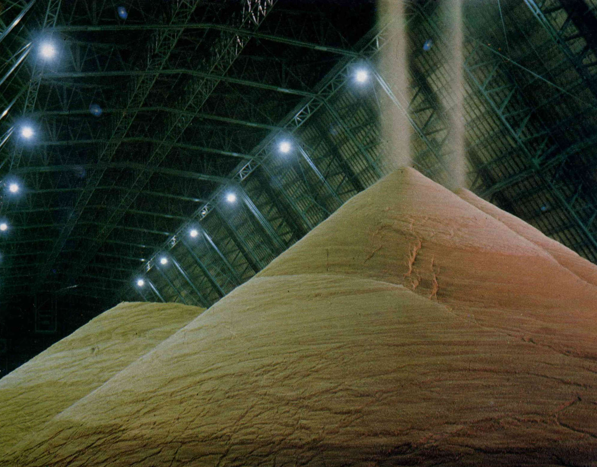 糖廠生產的粗砂糖,在倉庫裡堆積如山。