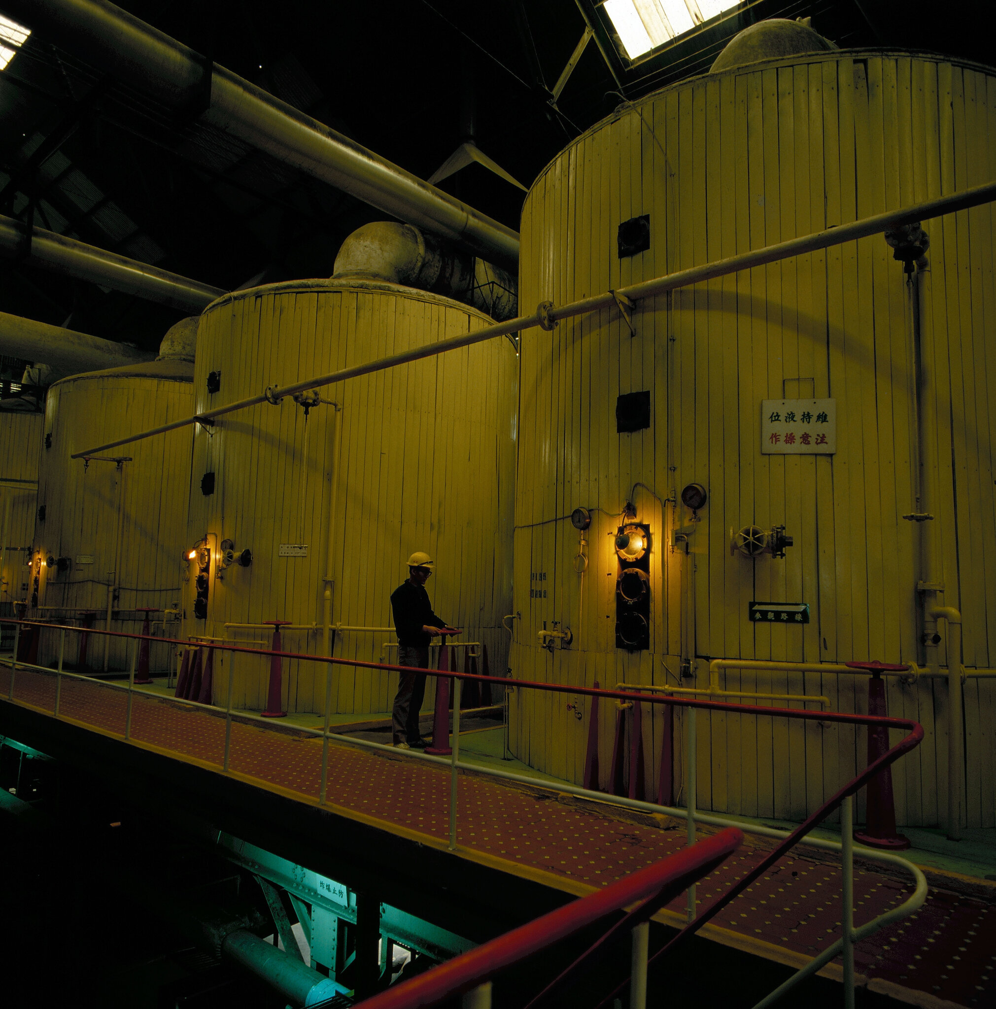 糖蜜可以製造酒精,這是設於新營副產品工廠的酒精工場。