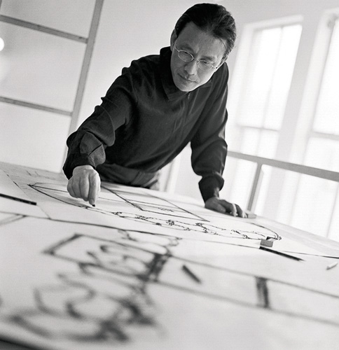 王俠軍看到店內家具、花器有各種材質和不可思議的前衛造型,例如書架的間隔以45度角向上延伸,看起來很張牙舞爪;以及由幾個圓形玻璃堆疊而成的長型花器等。閒暇之餘,他也隨手畫了三、四張瓷器器皿的設計圖,沒想到竟被看中。