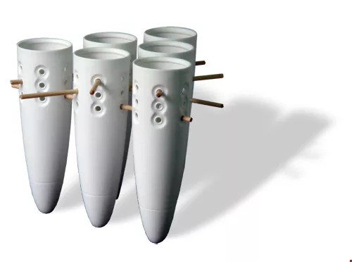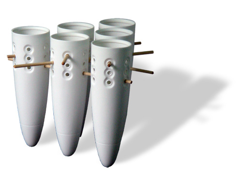 為了讓瓷土胚體能「站」好,燒製過程中必須使用很多托具,就像蓋房子在旁邊搭起鷹架一樣,支撐住還未固定成形的瓷土。