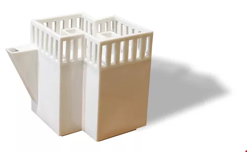 其次,八方新氣的器皿,充滿了線條和幾何造型,直線、弧線、稜角、彎度、鏤空等設計,工藝師依照圖稿雕塑出石膏打樣的模型胚體,送進攝氏千度高溫的爐子後,直線會歪斜、平面會凹塌、伸長的線條會縮短,比例已不成原形,一開始燒出來的作品是東倒西歪,慘不忍睹。