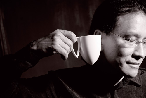 細框眼鏡、頭髮紮於腦後,富有人文氣質的王俠軍,浸淫於玻璃藝術多年後,帶來了創作新歡──純白、造型新穎的生活瓷器,希望為生活美學注入「新氣」。