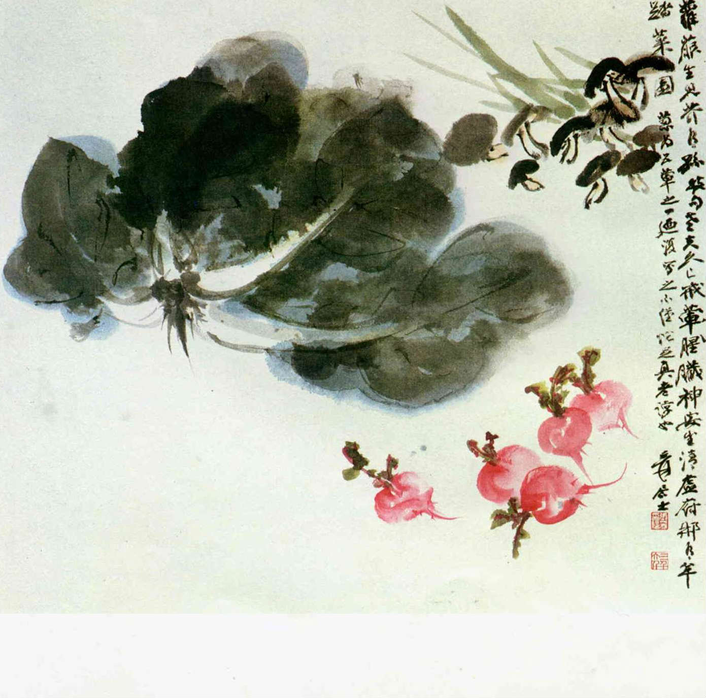 圖1.2:國畫大師張大千的作品,圖1.為水墨蔬果。(楊永山)