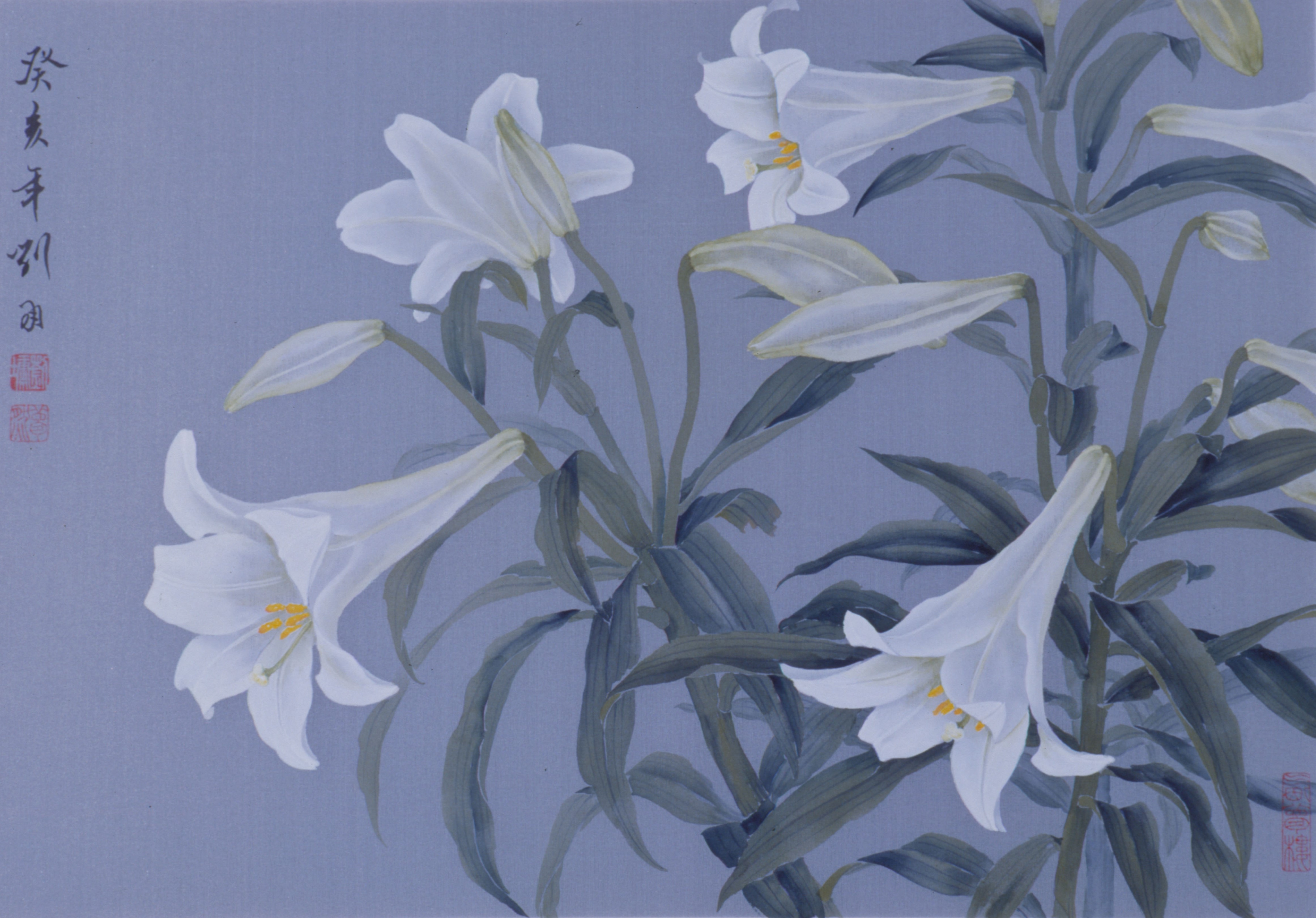 圖:劉墉採用宋國華製造的顏料,繪成的絹本工筆畫。(楊永山)