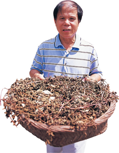 蔡家村「祈福保生宮」的總幹事蔡瀛,是一手規劃「共食、共耕、共學」安養模式的幕後功臣,他手上捧的則是當地野生的魚腥草,不管煮青草茶或燉雞湯都相當美味。