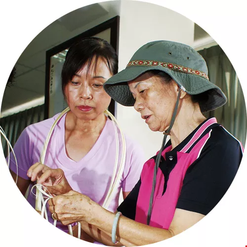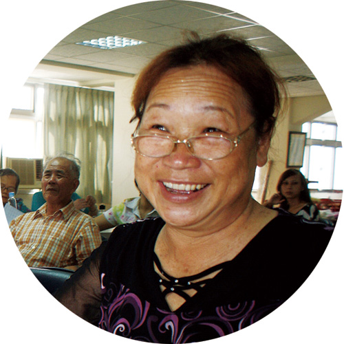 「我們這裡的老人家節目可多著,像我每天一早6點起來,就一直忙到過了晚上10點才上床,不是在唸書、作粿、用尼龍綑線做提袋、籃子等手工藝,不然就是和同學相約出遊;光是今年夏天就已去過台中谷關、桃園慈湖等地,中秋節前還一起學習製作手工月餅喔,我兒子都笑我是『最忙的阿祖』!」今年75歲、人稱「黑貓姨」的盧張桃理笑說。或許是因為生活順心,四代同堂的她,外表看起來頂多只有60出頭。