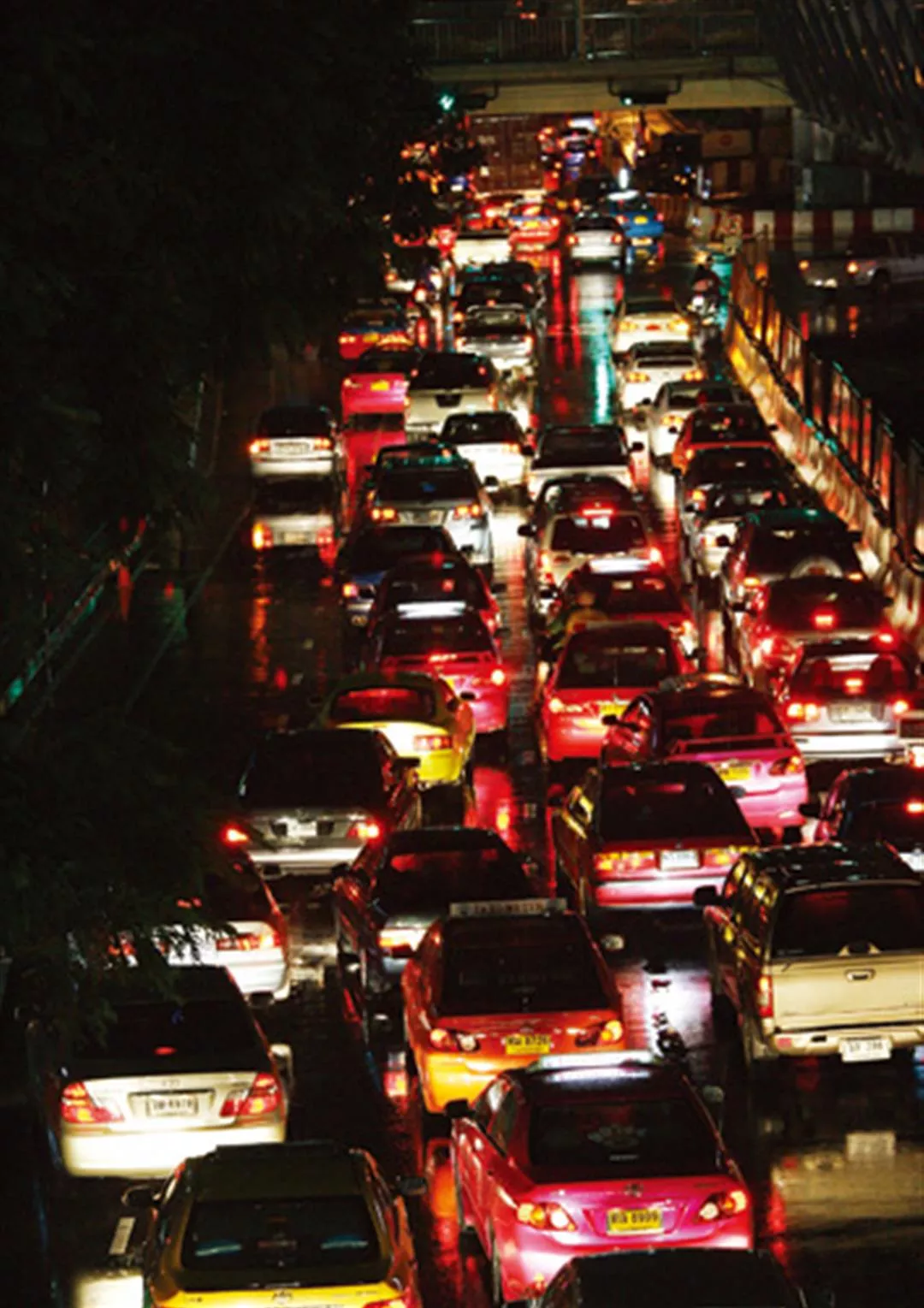 人類依賴汽車的生活模式是溫室氣體不斷飆升的一大肇因,此一範疇碳交易難以著力,碳稅即可有效抑制。圖為曼谷街頭常見的塞車景觀。