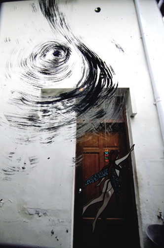 女妖藝廊的負責人李韻儀說,「女妖」是象徵著人們內心創作火焰的喚醒,以及自由能量的釋放,大可不必拘泥於生理上是男是女!圖中藝廊的咖啡吧,從主結構到燈飾及牆面彩繪,都是阿美族藝術家伊命與妻子饒愛琴的合力創作。