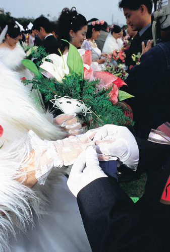 婚姻是社會穩定的一環。鮮花鋪成的儀式是結婚最重要的部分,從此,宗教和法律給予兩人一體的祝福。這一天在飯店裡的儀式,一對戀人走入婚姻之際,另一對也預約了未來的幸福。