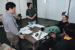 由演員一起參與「腦力激盪」的集體即興創作,已成為賴聲川戲劇創作的風格。圖為和名演員倪敏然(左)、金士傑(右)一起磨戲。
