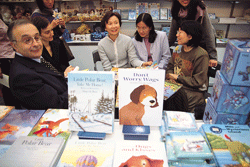 心靈書區、捷克館、奈及利亞出身的諾貝爾獎貴賓......,台北國際書展呈現非主流與強勢文化齊鳴的特色。(左圖)書展主題國家捷克館開館,由新聞局副局長李雪津(右四)主持開幕;(右圖)全球學英語熱潮方興未艾,歐美區展出許多外語童書。