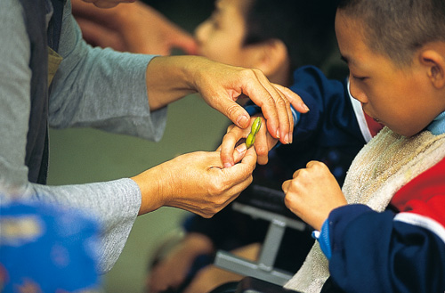 這個在一般人看來平凡無奇的教學活動,對這群腦麻兒卻意義重大。「我希望把大自然的元素帶進來,」國內第一位領有美國園藝治療師認證的黃盛璘表示,腦麻兒最大的問題是接觸外界刺激的機會太少,由於他們腦部負責運動機能的部位受損,動作遲緩吃力,為免麻煩,學校或教養機構往往乾脆禁止他們「動手」操作,其實孩子們心裡是很渴望的。