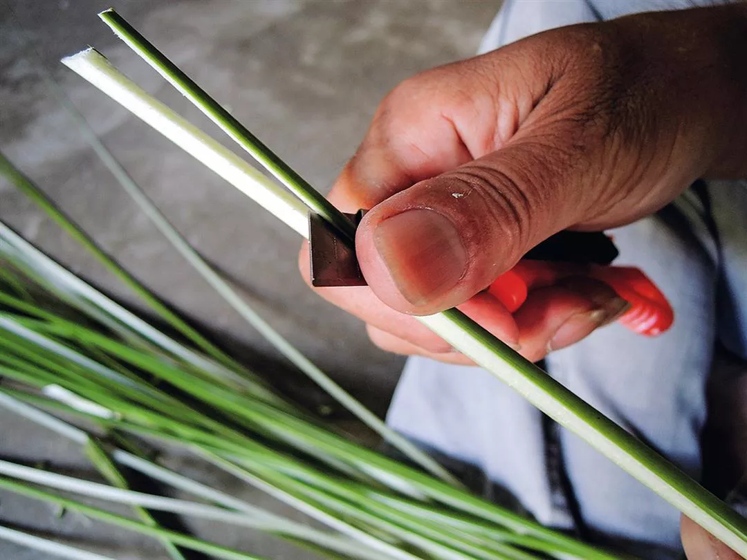 草蓆的編織技巧簡單,但前製的處理工序需經太陽曝曬3個月,完全乾透後,方能編織。台灣因濕度高,解決輪傘草容易因潮濕而發霉的問題,成了當務之急。
