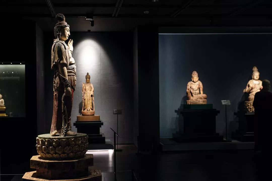 正在展出中的遼金佛教造像特展,展廳呈現莊嚴的氛圍。