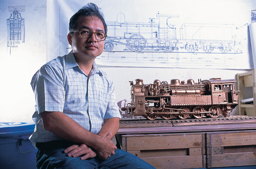 進入謝嘉亨位於台北市鬧區的工作室,彷彿走進「縮小版」的火車博物館:清台灣巡撫劉銘傳,1888年向德國霍亨索(Hohenzollern)購入的台灣第一部蒸氣火車「騰雲一號」;煥發黃銅光澤,1910年日台灣總督府向美國購入ALCO廠的110型車頭……,每一部皆比例嚴謹完美,造型寫實生動。