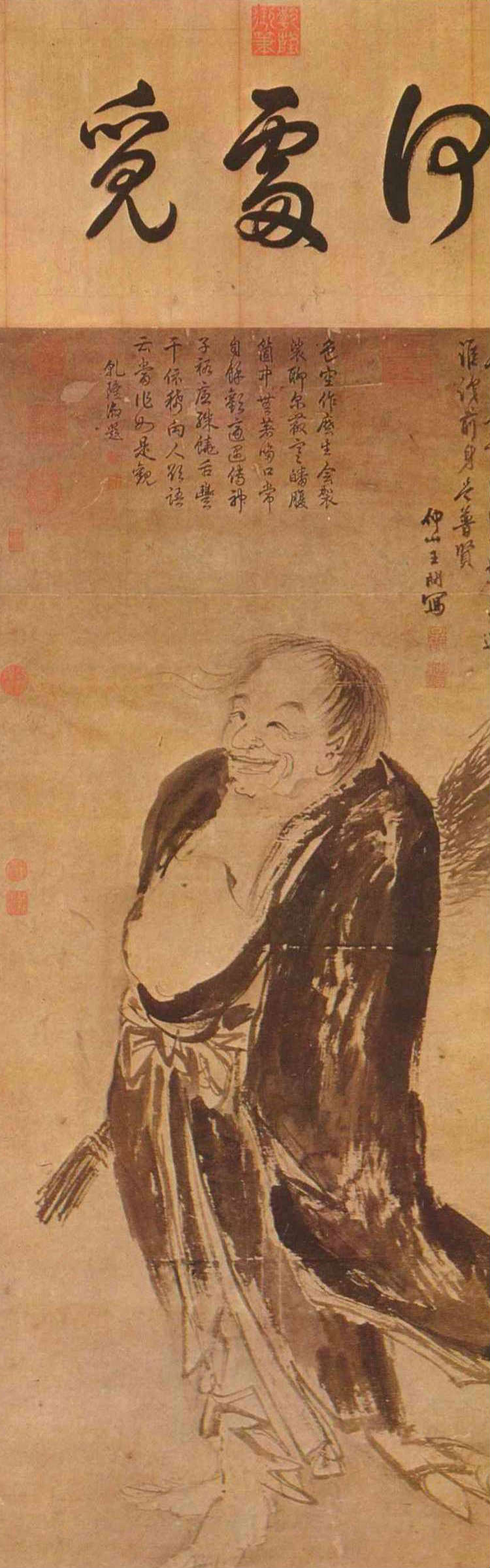 畫中拾得臉上天真純摯的笑顏,最令人嚮往,彷彿有一股神奇的力量,使觀者也拋卻塵慮,與之會心一笑。