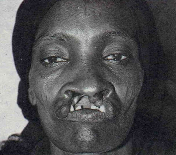 這位沙烏地阿拉伯婦女有嚴重的兔唇,直到五十歲時,才由林靜芸為她矯治。此二圖為手術前後的情況。(李影 文.姍姍)
