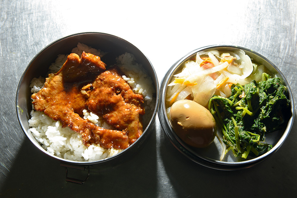 珍惜與分享之餘,愛加倍回收學校午餐團膳打剩的飯菜,經過保鮮、加熱,上桌後,又是一頓香噴噴的飯菜。