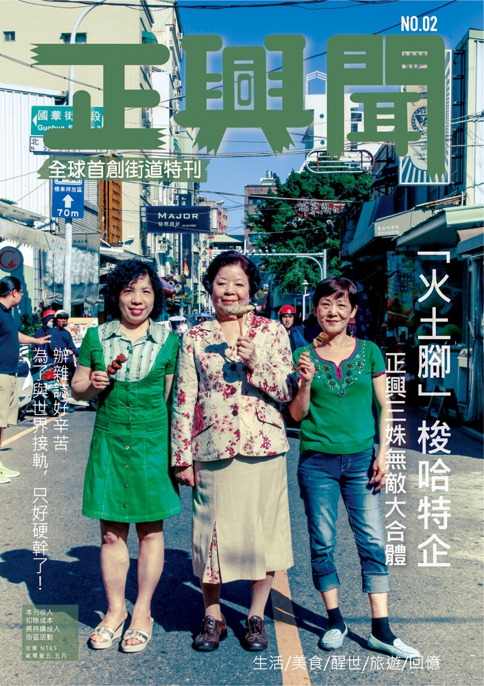 去年11月,標榜「全球首創街道刊物」《正興聞》問世,街上三十幾家店舖老闆全成了故事主角。在地人最熟悉的泰成水果店、N23度功夫茶、豐發黑輪店3位老闆娘更穿上摩登復古的碎花洋裙、牛仔褲登上雜誌封面,擄獲外界目光,為這本宣示「全世界視野最窄」的《正興聞》,做了最佳宣傳。