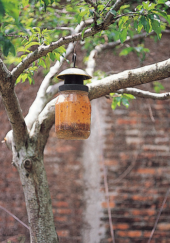 有機栽培的梅子園裡,利用「費洛蒙」誘捕害蟲。