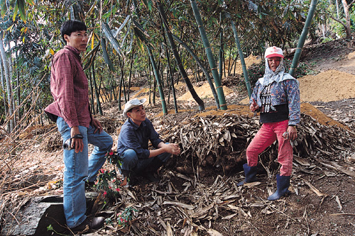 然而,對於「雞母蟲」——這時下最受歡迎的都會兒童寵物「獨角仙」的幼蟲,山上農民的習慣作法是「看到蟲就把它們統統挖出,丟到馬路上,讓車子壓死。」其實雞母蟲不僅無害,它們消化木屑、為泥土添肥料,反而對竹筍有益。
