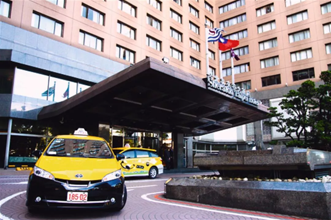 全球飯店服務供應商Hotel.com2012年評比,台北市計程車車體乾淨、乘坐舒適,整體服務品質在國際城市中排名第七。圖為台灣大車隊與五星級台北喜來登飯店合作,排班運載旅客。