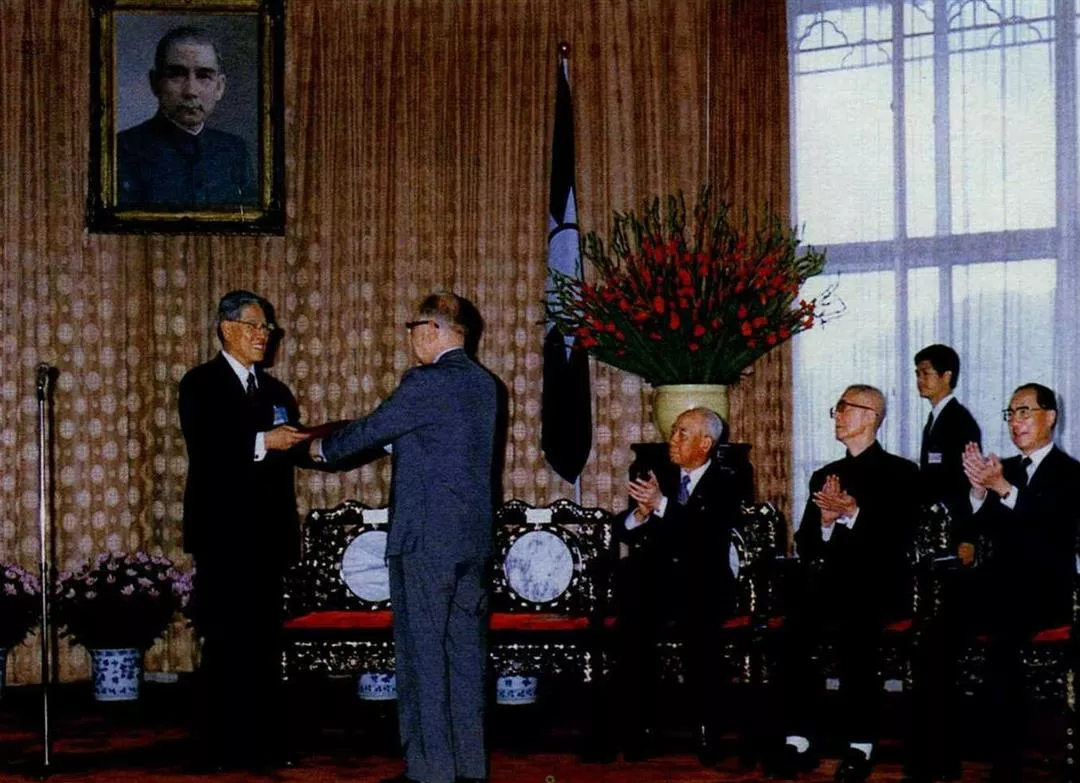 李登輝接受主席團的謝東閔致送黨主席當選證書。(林成軍)