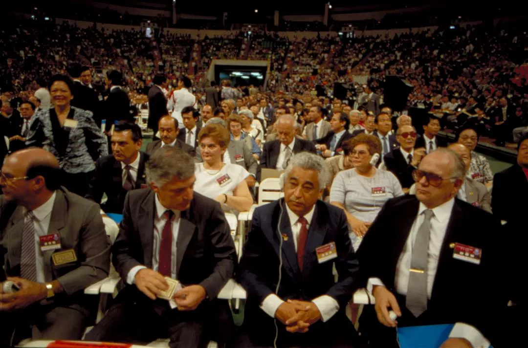 七月八日,有一千一百七十六位代表起立贊成李登輝擔任黨主席。(林成軍)