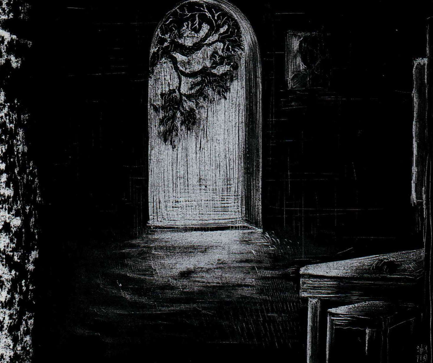 月光照不到的正廳廊下,一點螢光忽上忽下流飛著。陳啟後踩著雜草簇生的石板徑道走過去,開了廳門。脫漆的門板嘎呀開了。他提起腳,跨過門檻。屋內的熱氣夾著一股他熟悉的,舊書,老屋與檀香混合起來的味道烘上來。他摸著黑,找到開關,啪噠亮了燈。