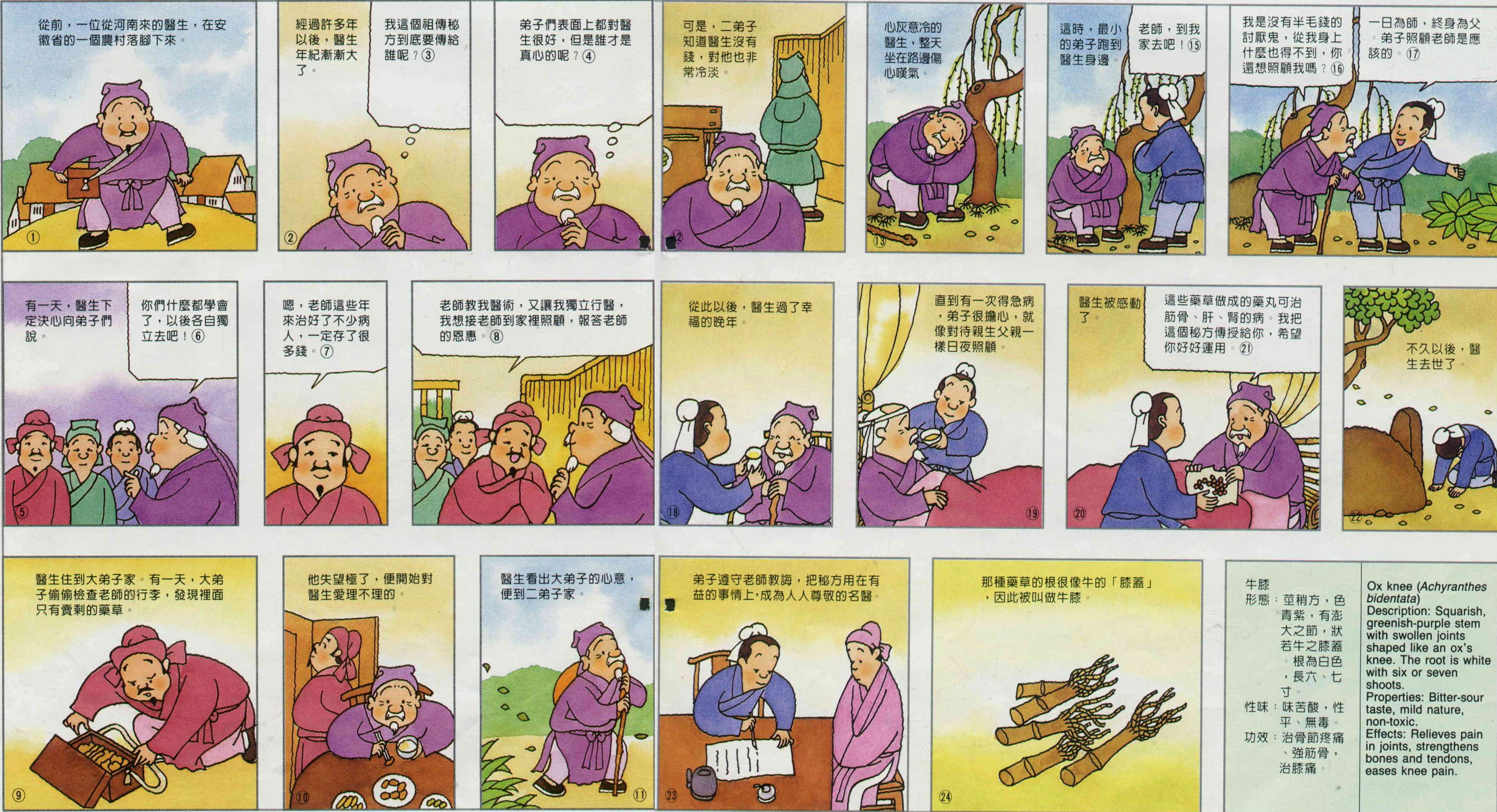 9.醫生住到大弟子家。有一天,大弟子偷偷檢查老師的行李,發現裡面只有賣剩的藥草。
