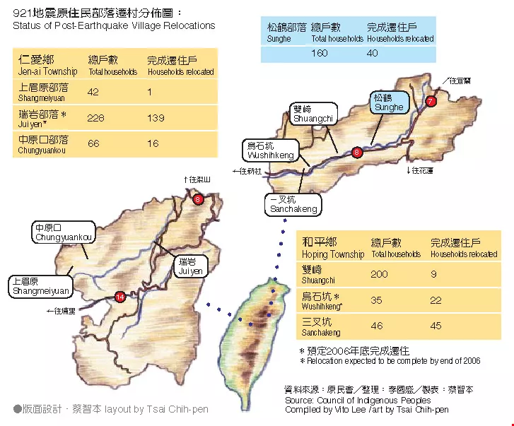 921地震原住民部落遷村分佈圖資料來源:原民會整理:李國盛製表:蔡智本