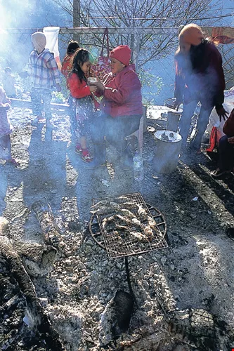 坐在鐵木家的草坪上,幾個人互相幫忙升火、遞凳子,將三指幅寬的河魚洗淨、去內臟、抹上了鹽烤火,再配上維士比,即使面對不認識的來客,也熱情招呼一起分享。