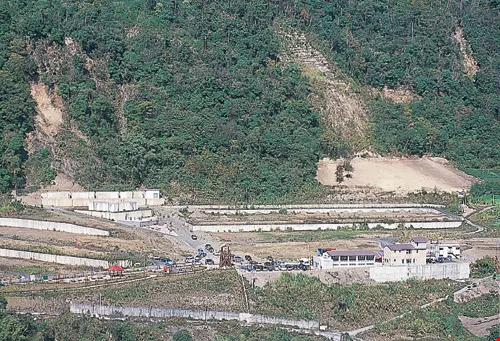 位於北港溪畔、面積約十公頃的河階地早已整地完成,這裡就是瑞岩人未來的家。圖右下方的房舍則是早先建造完成的村辦公室。