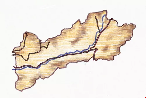 在東南角和西北側兩條河流的圍繞下,瑞岩像是一座隆起孤島,這樣的險峻地形由遠方看來,鐵皮屋頂和綠樹夾雜的部落宛如浮在雲端上的小城。然而,也由於這樣特殊且脆弱的地形,讓全村228戶的居民,在921地震時災情慘重:部落內唯一的國小全毀、民宅全倒8間、半倒15間、8人罹難……。
