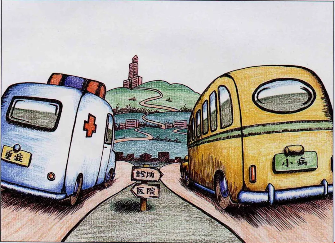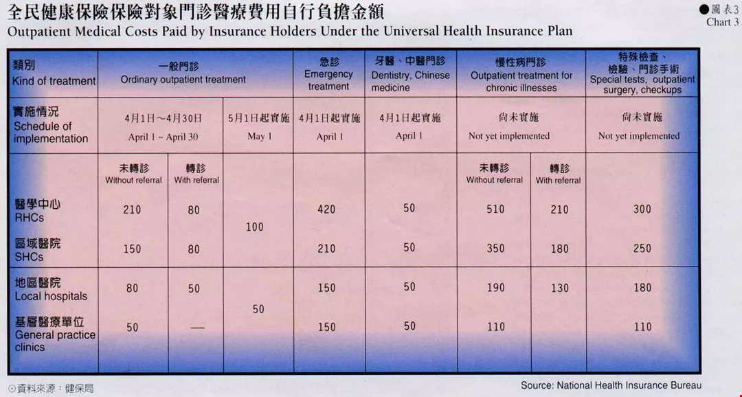 計程車上,乘客談起全民健保,司機忍不住插進話來,滔滔不絕地訴苦。原來他的孩子患有氣喘,以往有榮民眷屬保險時,一發病就直奔榮總就診,已經累積了厚厚的一大疊病歷,沒想到全民健保開辦後,「轉診」制度正式上路,要去榮總前得先經過診所轉診,否則要加重部分負擔。