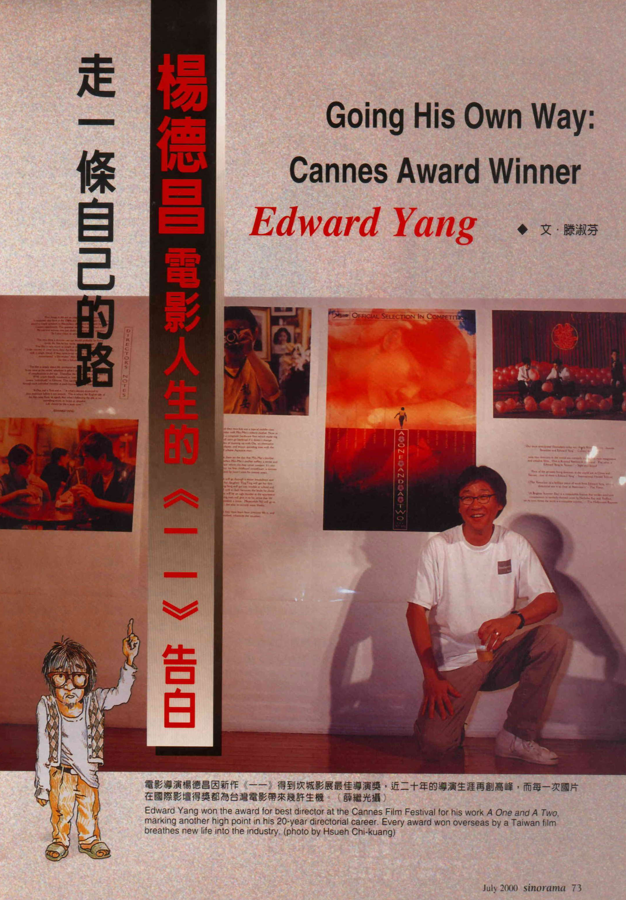 沈寂已久的台灣電影終於又出現讓人歡欣的消息,出身台灣電影新浪潮的導演楊德昌,以新作《一一》奪下第五十三屆坎城影展最佳導演獎。有一段時間沒有在媒體曝光的楊德昌,因為得獎也成為國內媒體追逐報導的焦點。